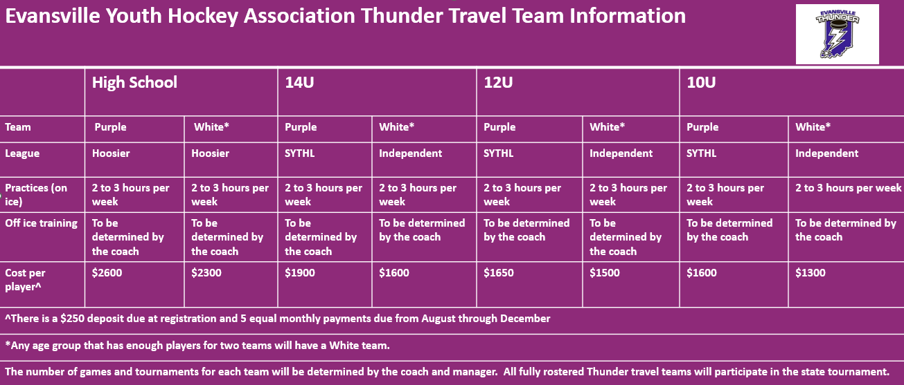 The EYHA Thunder Travel Hockey tryouts will be held May 7th through May 19th. Each age group will have two tryouts. Please attend at least one of the tryouts for your age group. If you cannot attend either tryout, please contact your coach to setup an alternative tryout time.